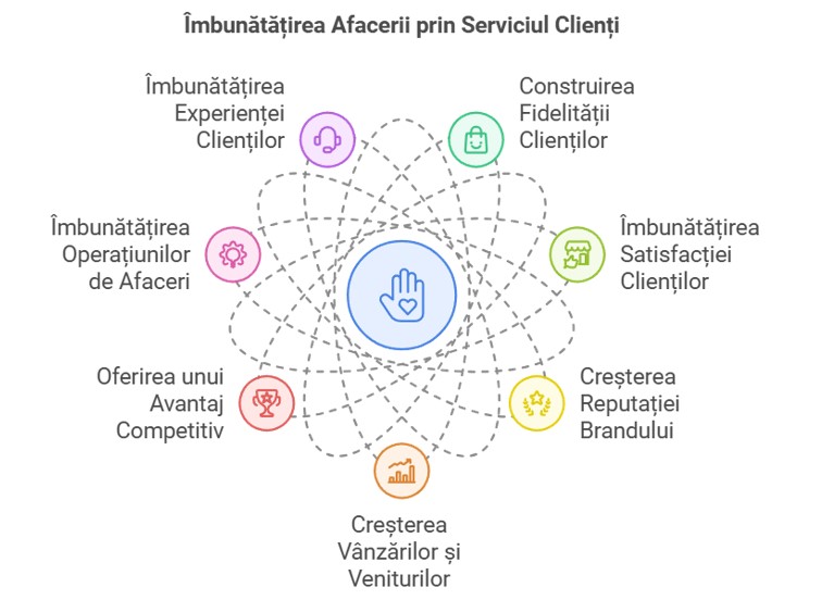 Păstrarea Clienților: Este mai rentabil să păstrezi clienții existenți decât să atragi alții noi, iar un serviciu clienți bun ajută la menținerea clienților să se întoarcă.