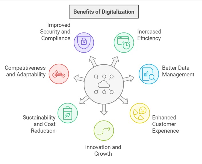 Data Collection and Analysis: Digitalization enables the collection of large amounts of data. With analytics, organizations can gain insights that drive better decision-making.